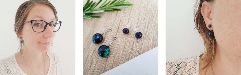 Après quelques mois de tests, j’ai le plaisir de faire découvrir ce nouveau système de pendants à adapter sur les puces d’oreilles anti-allergiques. Ce sont des pendants de boucles d’oreilles comme celles que vous pouvez trouver dans la boutique. Sauf que le support ne s’accroche pas à l’oreille mais directement à la puce en plastique. Ainsi, vous pouvez avoir deux paires de boucles d’oreilles en une.